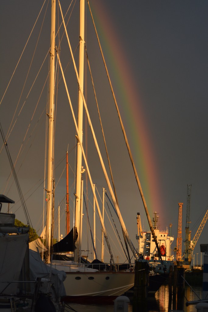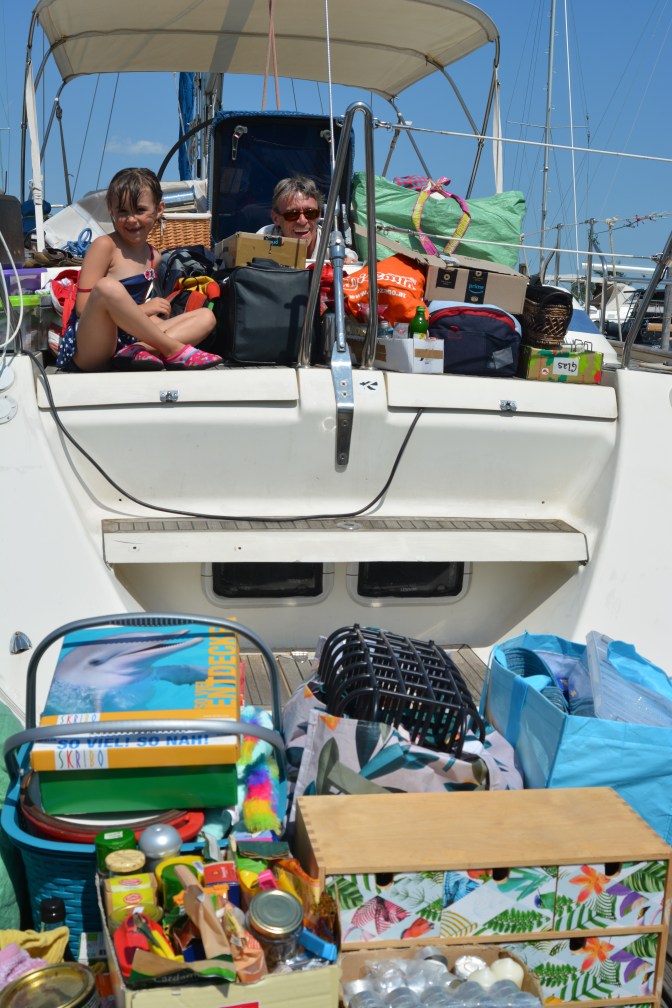 Jetzt muss nur noch Alles ins Boot hinein passen! Während ich noch mal nach Hause bin um das Auto zu übergeben und mit Reinold und den restlichen Sachen zurück zum Boot zu kehren, hatte Juliane schon das Meiste erledigt.